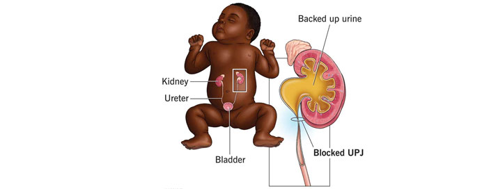 PUJ obstruction is a condition where the junction between the kidney (renal pelvis) and ureter becomes narrowed or blocked, preventing urine from draining properly into the bladder. This causes urine to accumulate in the kidney, leading to hydronephrosis, pain, infections, and possible long-term kidney damage if not treated on time. It is commonly detected during prenatal or postnatal ultrasound, and early evaluation by a paediatric urologist ensures proper management and kidney protection.